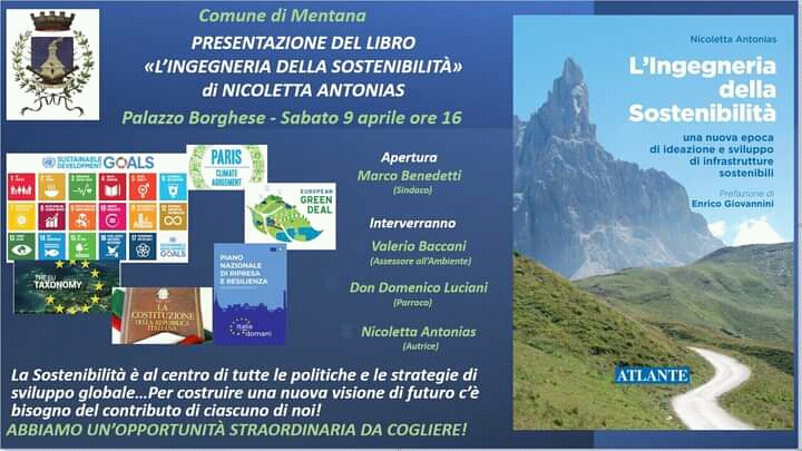 Sabato 9 aprile ore 16.00 presso Palazzo Borghese a Mentana si parlerà di sostenibilità. In questa occasione verrà presentato “L’Ingegneria della sostenibilità”, un libro di Nicoletta Antonias.