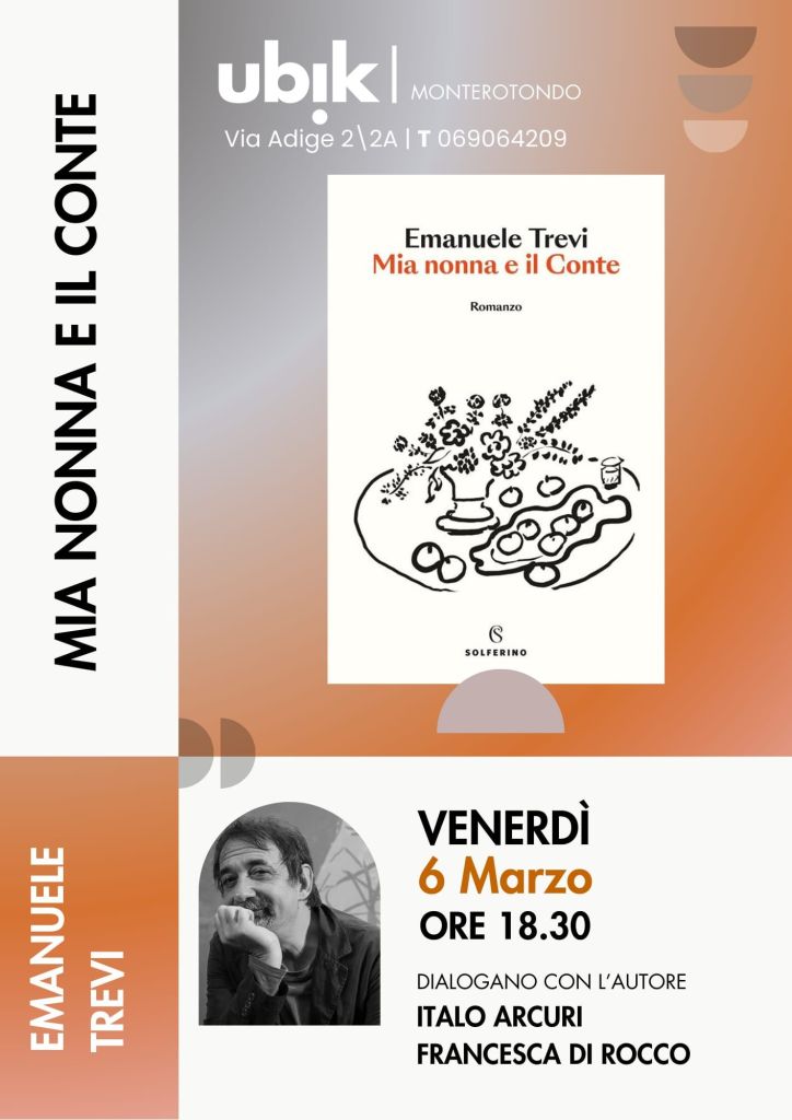 Lo scrittore Emanuele Trevi presenterà il suo ultimo libro “Mia nonna e il conte”, pubblicato da Solferino, in un appuntamento aperto a lettori e appassionati di letteratura.