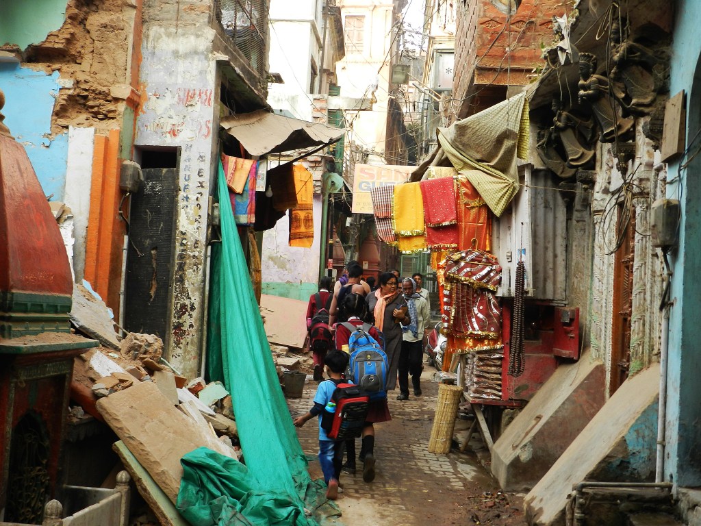 Nulla ti prepara alle montagne di spazzatura sparse ovunque, quintali di rifiuti putridi che ricoprono “la qualunque”: ogni corso d’acqua e di liquame che costeggia le strade, l’asfalto, i marciapiedi, qualsiasi cosa. La spazzatura crea strati talmente compatti che non ti accorgi nemmeno che lì sotto scorre un fiume. Miriadi d’involucri di ogni materiale che si mischiano a escrementi di animali di ogni tipo: mucche, capre, topi, piccioni, cani, oche, galline, cavalli, asini, scimmie e a volte elefanti che indisturbati e liberi partecipano e convivono con questa Babilonia di umanità assurda e delirante che occupa spazi troppo stretti e totalmente inadeguati.