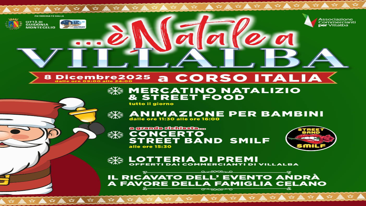 Villalba di Guidonia si prepara a vivere una giornata all’insegna della festa con l’evento “È Natale a Villalba”, promosso dall’Associazione Commercianti per animare il territorio e rafforzare il senso di comunità durante le festività.